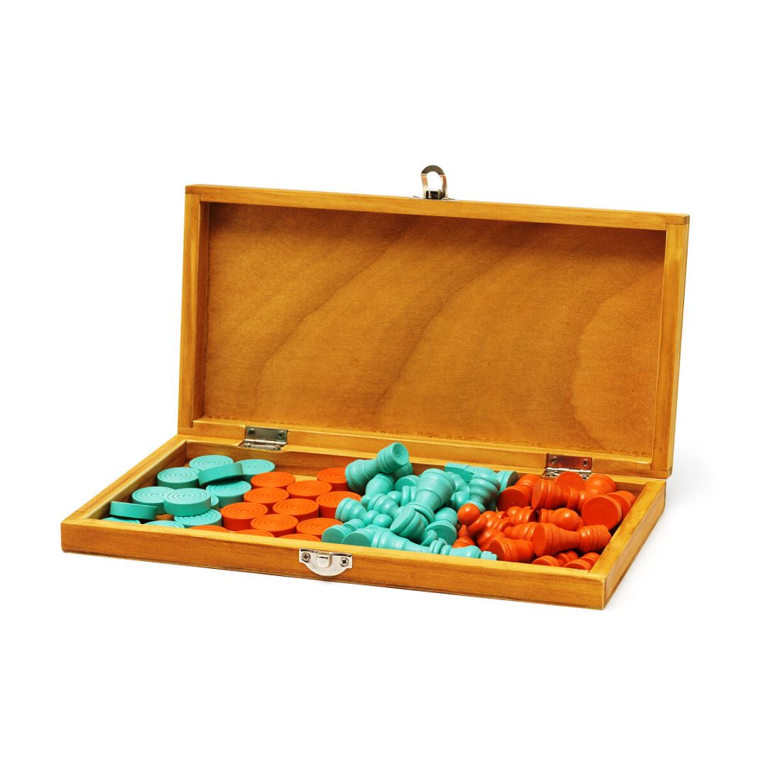 Σκάκι και Ντάμα, δυο παιχνίδια διαχρονικά και πάντοτε επίκαιρα, με ανεξάντλητους συνδυασμούς στρατηγικής και τακτικής. Αυτό το σετ παιχνιδιών σε vintage στυλ, συνδυάζει 2 παιχνίδια σε μια σκακιέρα με μοναδικό χρωματικό συνδυασμό για να αυξήσει τη διασκέδαση.