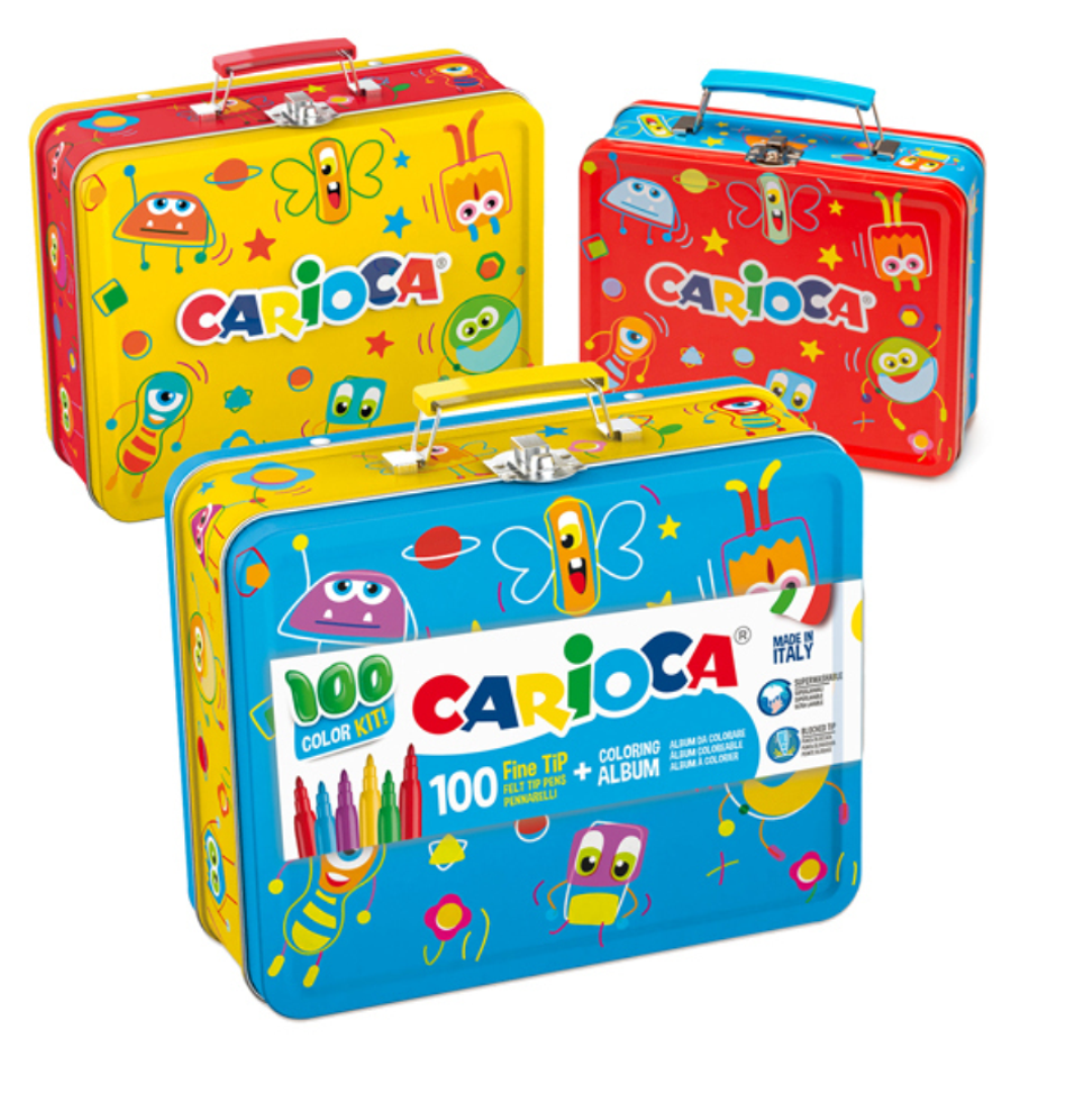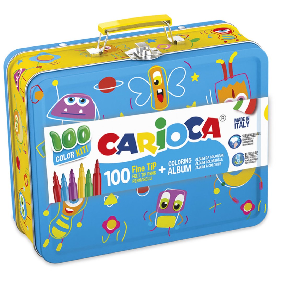 Το σετ λεπτών μαρκαδόρων ζωγραφικής της Carioca περιέχει 100 μαρκαδόρους σε διάφορα χρώματα. Είναι πλενόμενοι για την εύκολη αφαίρεση τους από δέρμα, ρούχα και επιφάνειες.